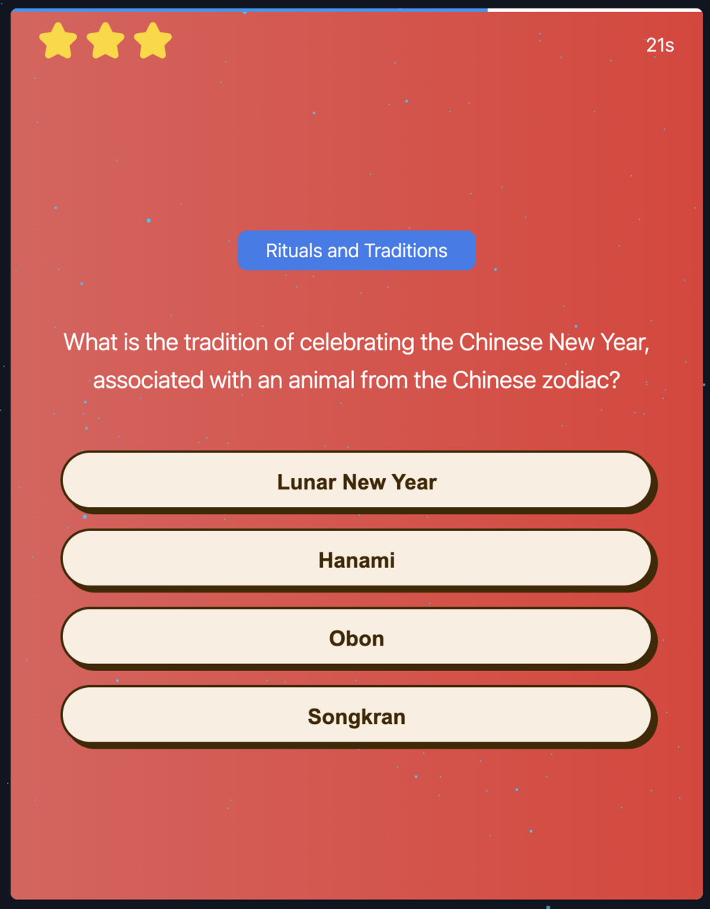 You will get a ZIP file, that contains a NextJS 14 application, a react only application, a javascript file that that be imported inside any project that runs inside a browser and a documentation on how each of them are built and how you can use them. You will also get a file that contains more than 3000 questions from over 100 topics.