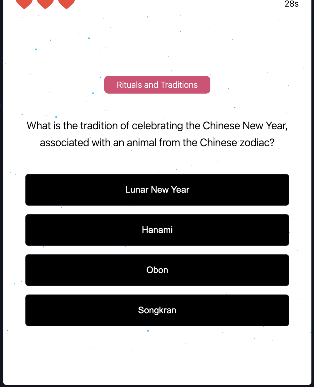 - quest - finish levels with predefined number of questions, with a minimum number of mistakes